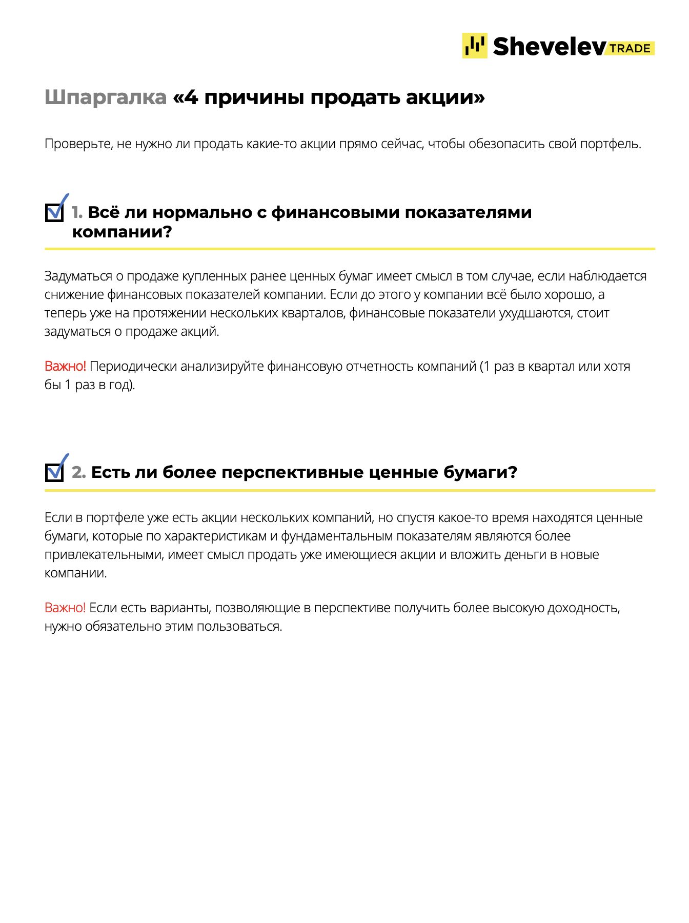 Скачайте шпаргалку и проверьте, не нужно ли продать какие-то акции прямо сейчас, чтобы обезопасить свой портфель.